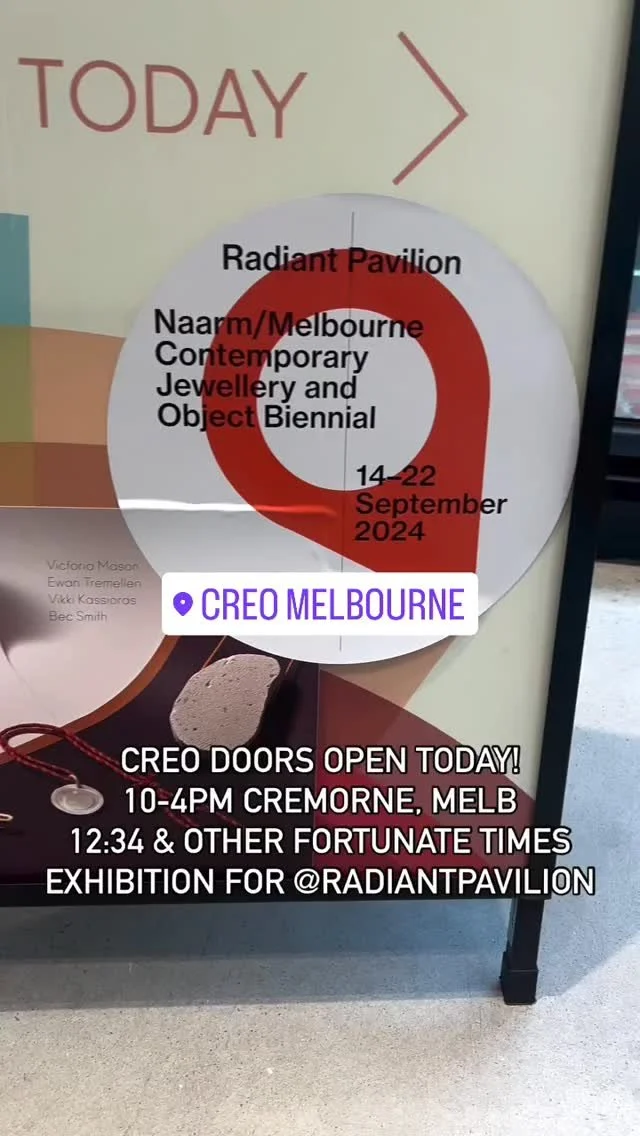 View fullsize Exhibition drinks @creomelbourne for 12:34 & Other Fortunate Times open today from. 10am Exhibition drinks Friday the 20th Sept 3-7pm. With my friends and collaborators @victoriamasonjewellery  @ewantremellen @b.ecsmith  My work for this special